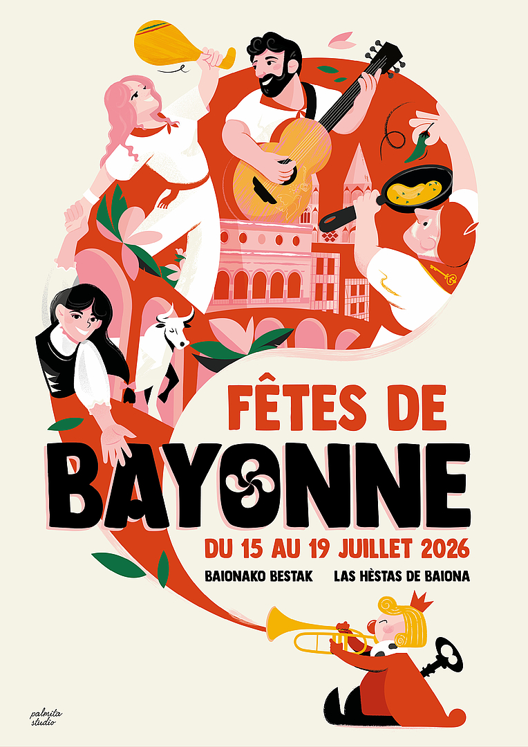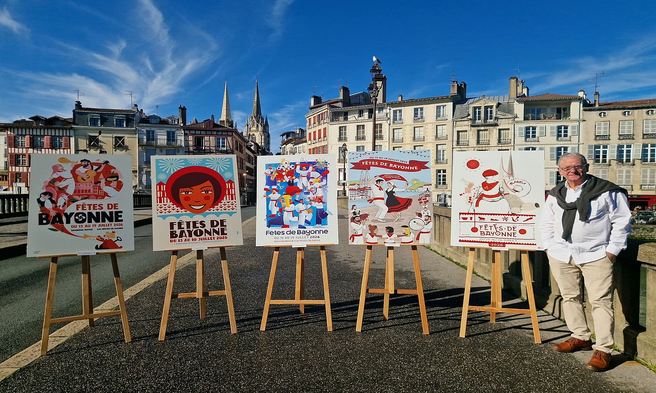 Leurs propositions sont également à découvrir en accès libre à l'Office de tourisme de Bayonne et au musée Basque du 6 au 22 février 2026. Pendant cette période, vous êtes invités à voter pour votre projet d'affiche des Fêtes de Bayonne préféré.