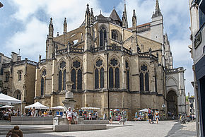 Le traitement du pourtour de la cathédrale entre dans le cadre d'un embellissement du centre-ville et répond à une volonté d'en faciliter et sécuriser l'accès piétonnier. L'objectif principal de ce chantier était le retrait de la chaussée bitumée, ainsi que sa mise à niveau, qui compte tenu du dénivellement naturel de la place, située sur un des promontoires de la ville, reste relative. Des emmarchements ont en effet été aménagés pour rejoindre les rues du Pilori et Argenterie, ainsi que pour accéder à l'ancien Tribunal. En pierre de la Rhune, ils sont adaptés pour offrir une assise confortable au public qui s'y détend, profitant d'une agréable vue sur la cathédrale et l'entrée du cloître.