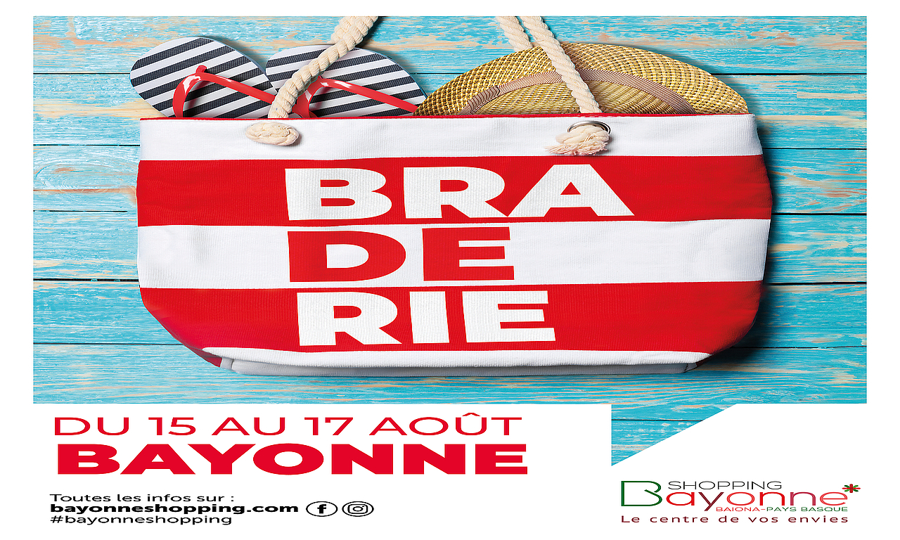 Du 15 au 17 août, participez à la braderie d'été des commerçants bayonnais pour faire de bonnes affaires. Plus d’une centaine de stands vendredi et samedi dans les rues piétonnes. Les commerçants bayonnais ouverts le dimanche.