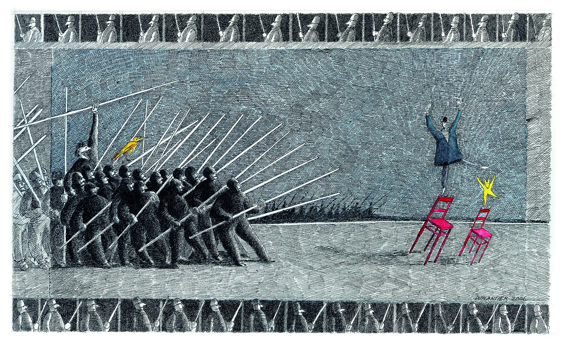 1973- « Drôle de solitude » au centre Pompidou réunit des dessinateurs d’humour. Il y expose au côté de Reiser, Chaval, Bretécher, Mose, Topor... Il s’essaie à la bande dessinée mais la délaisse pour privilégier le travail à la plume, les grands formats et l’aquarelle.