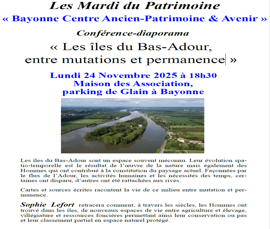 Les îles du Bas-Adour sont un espace souvent méconnu. Leur évolution spatio-temporelle est le résultat de l’œuvre de la nature mais également des Hommes qui ont contribué à la constitution du paysage actuel. Façonnées par le flux de l’Adour, les activités humaines et les nécessités des temps, certaines ont disparu, d’autres ont été rattachées aux rives.