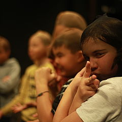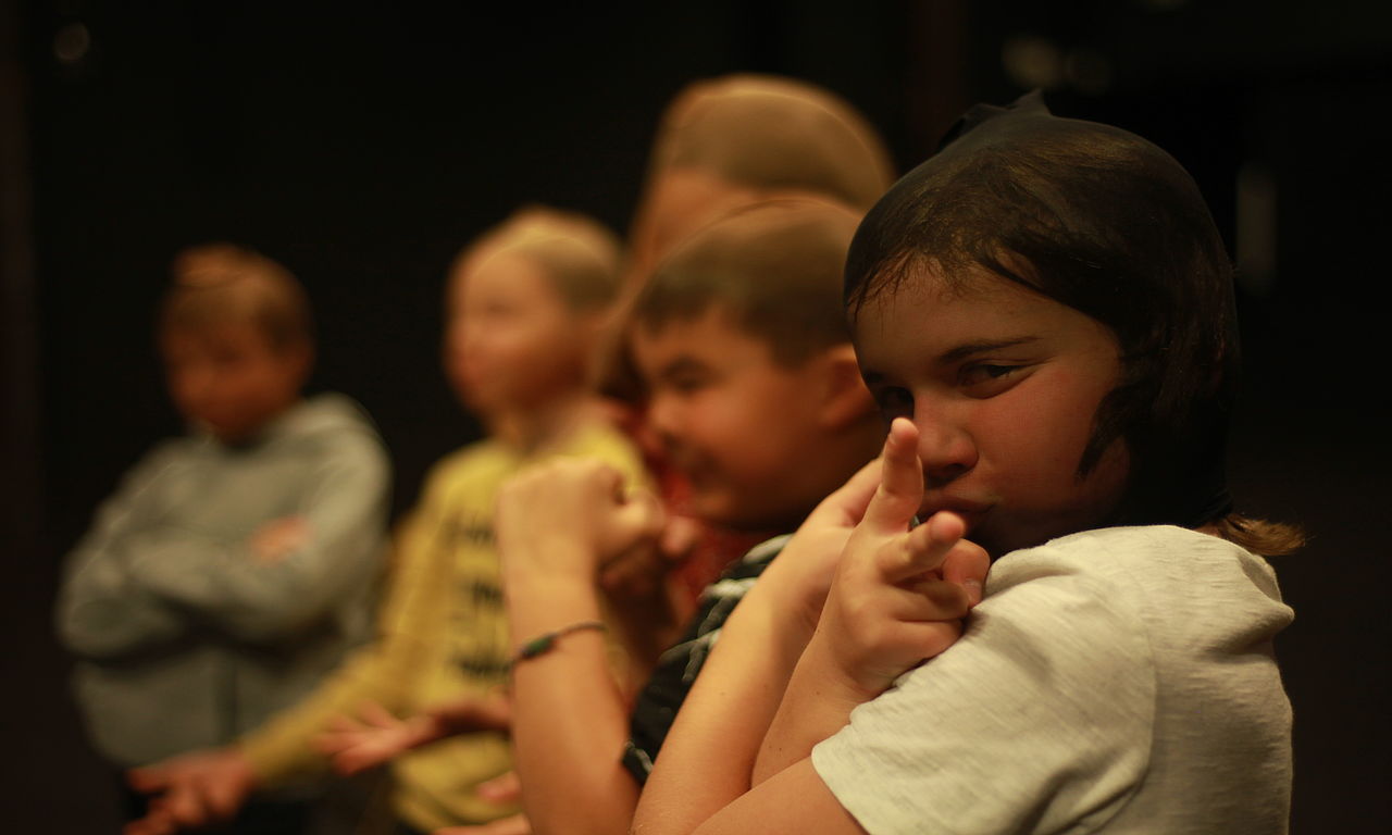 En déplaçant notre regard sur les monstres, Bérangère Jannelle invente une véritable communauté à travers une scénographie sans cesse en mouvement. Utilisant toutes les possibilités du plateau, l’artiste crée une complicité entre le public et les enfants accompagnés d’un adulte, le comédien « apprenti pédagogue » Rodolphe Poulain, qui rythme et relance avec bienveillance l’état de recherches de nos jeunes comédiens, véritables athlètes de la pensée.