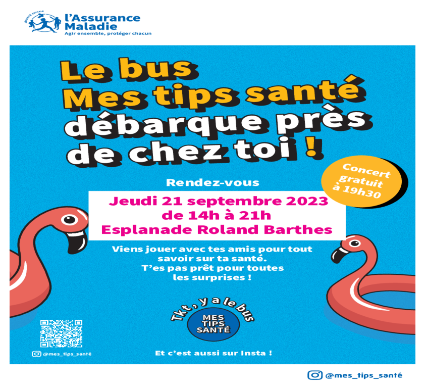 Dans un bus baptisé "Mes Tips Santé", des conseillers de l'Assurance maladie répondront à de fréquentes interrogations : "est-ce important d'ouvrir un compte Ameli à 18 ans ?", "jusqu'à quel âge se faire vacciner du HPV ?", "comment s'assurer lorsque l'on part étudier à l'étranger ?", "comment conserver une haleine fraîche et un sourire claquant ?", "tatoo, piercing et hépatite B"...