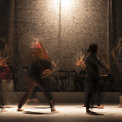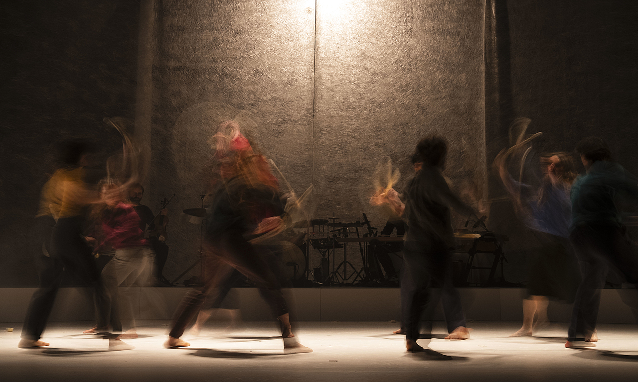 chiffre d’or des danses traditionnelles basques marquant le calendrier des rites carnavalesques. Épaulés par Stéphane Garin, percussionniste de l’Ensemble 0, les danseur.e.s du Collectif Bilaka ont cherché à écrire une véritable partition rythmique, faisant de cette makil dantza une pièce musicale à part entière.