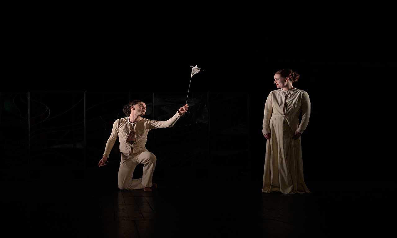 Formée à l’Académie de la Comédie-Française, Émilie Lacoste poursuit son travail autour de l’œuvre d’Alfred de Musset. Lorsqu’il écrit On ne badine pas avec l'amour, Musset est un poète de vingt-quatre ans. Il vient de rentrer de Venise où il séjournait avec George Sand. Lors de ce voyage, le couple se déchire et se sépare.