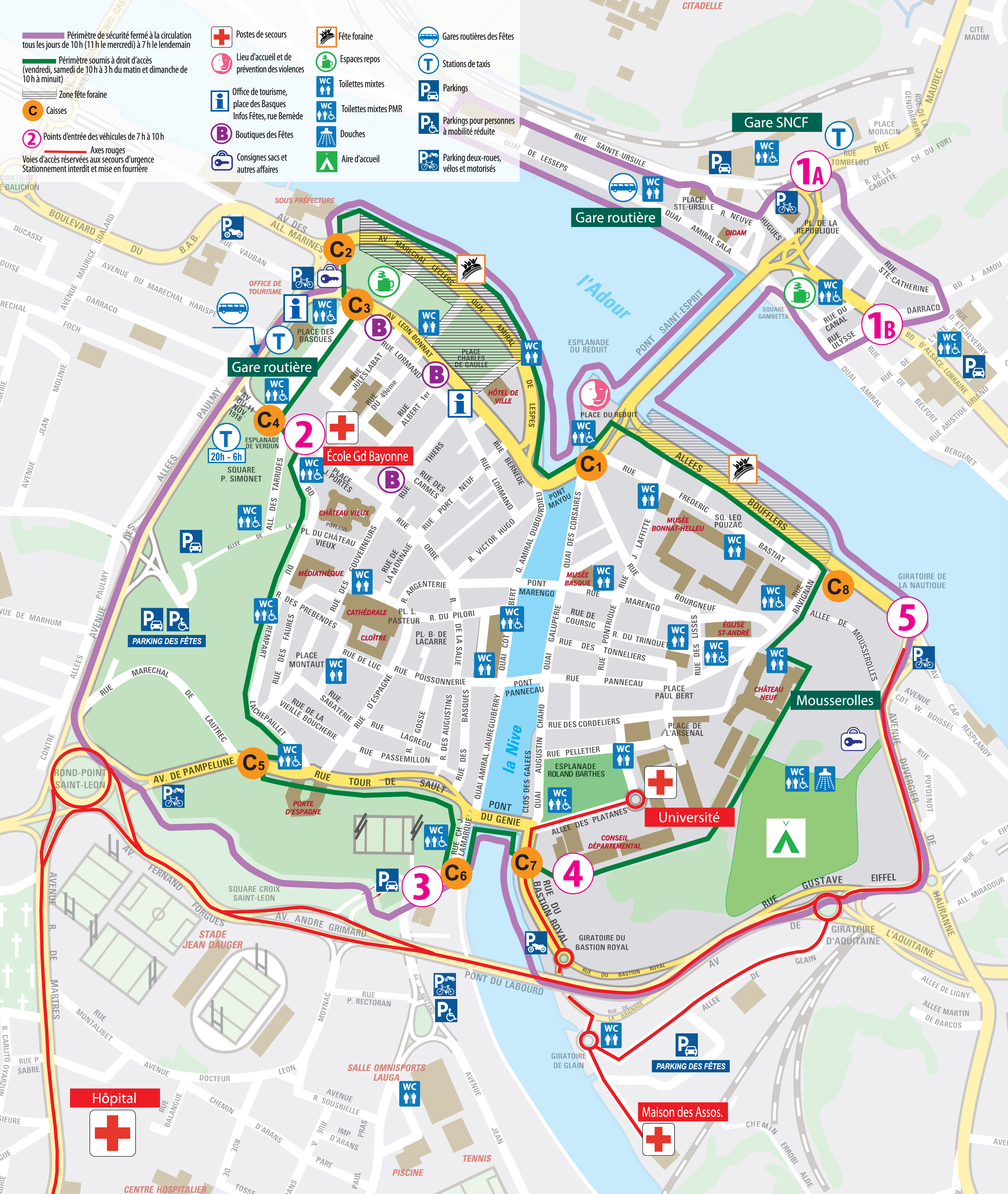 - N°1a, 1b, 1c et 1d : Entrée dans le quartier Saint- Esprit (voir interdiction particulière pour l’arrivée de la Foulée du festayre le mercredi 9 juillet à partir de 7h30).